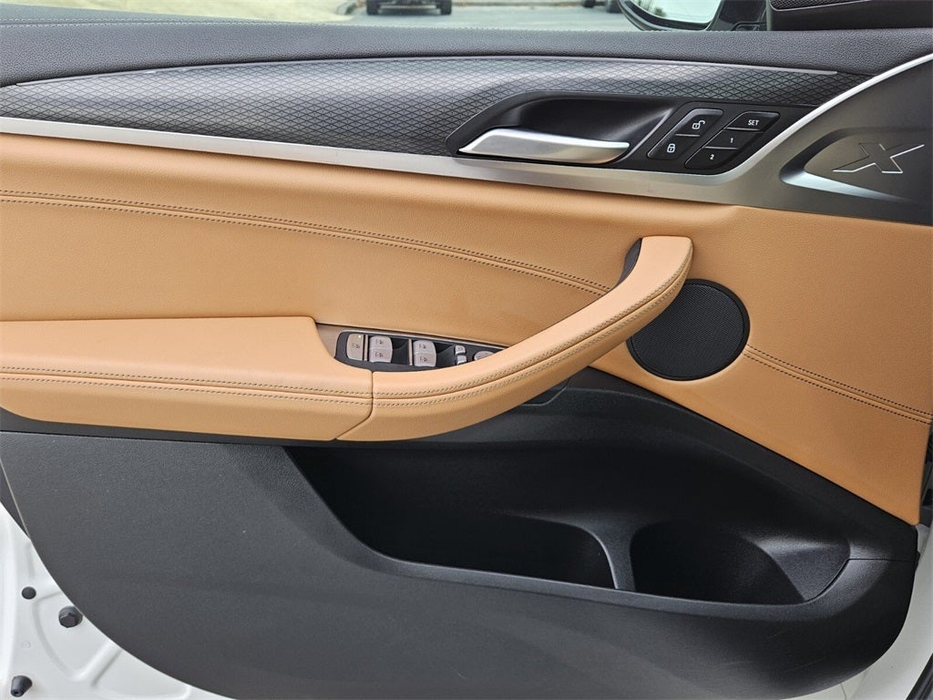 Connected Package Pro, Driving Assistance Professional Package (Active Driving Assistant Pro and Extended Traffic Jam Assistant), Parking Assistance Package (Active Park Distance Control, Parking Assistant Plus, Rear-View Camera, and Surround View w/3D View), Premium Package (Head-Up Display, Heated Front Seats, and Heated Steering Wheel), X3 M40i, 4D Sport Utility, I6, AWD, Alpine White, Cognac W/Contrast Stitch Leather, 12 Speakers, 3.385 Axle Ratio, 4-Wheel Disc Brakes, ABS brakes, Adaptive suspension, Air Conditioning, Alloy wheels, AM/FM Radio, AM/FM radio: SiriusXM, Apple CarPlay & Android Auto Compatibility, Auto High-beam Headlights, Auto-dimming door mirrors, Auto-dimming Rear-View mirror, Automatic temperature control, BMW Assist eCall, BMW TeleServices, Brake assist, Bumpers: body-color, ConnectedDrive Services, Delay-off headlights, Driver door bin, Driver Lumbar Support, Driver vanity mirror, Dual front impact airbags, Dual front side impact airbags, Electronic Stability Control, Emergency communication system: BMW Assist eCall, Enhanced USB & Bluetooth® w/Smartphone Integration, Exterior Parking Camera Rear, Four wheel independent suspension, Front anti-roll bar, Front Bucket Seats, Front Center Armrest, Front dual zone A/C, Front reading lights, Fully automatic headlights, Garage door transmitter, Heated door mirrors, Hi-Fi Sound System, Illuminated entry, Knee airbag, Leather steering wheel, Live Cockpit Pro w/Navigation, Low tire pressure warning, Memory seat, Navigation System, Occupant sensing airbag, Outside temperature display, Overhead airbag, Overhead console, Panic alarm, Passenger door bin, Passenger vanity mirror, Perforated SensaTec Upholstery, Power door mirrors, Power driver seat, Power Front Seats, Power Liftgate, Power moonroof, Power passenger seat, Power steering, Power windows, Radio data system, Rain sensing wipers, Rear air conditioning, Rear anti-roll bar, Rear reading lights, Rear seat center armrest, Rear window defroster, Rear window wiper, Remote Engine Start, Remote keyless entry, Security system, SiriusXM Satellite Radio, Speed control, Speed-sensing steering, Speed-Sensitive Wipers, Split folding rear seat, Spoiler, Sport Seats, Sport steering wheel, Steering wheel mounted audio controls, Tachometer, Telescoping steering wheel, Tilt steering wheel, Traction control, Trip computer, Turn signal indicator mirrors, Variably intermittent wipers, Wheels: 19 x 7.5 M Y-Spoke Bi-Color (Style 887M), and WiFi Hotspot.